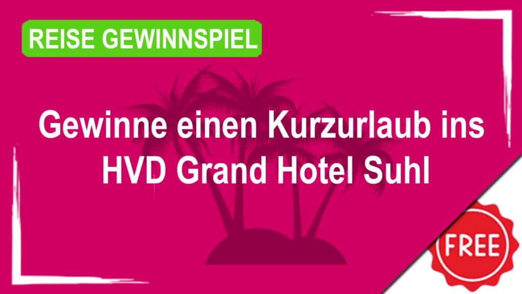 Gewinne mit etwas Glück einen 4-tägigen Freiaufenthalt für zwei Personen mit Halbpension im HVD Grand Hotel Suhl. Du hast die freie Auswahl aus allen bei penny-reisen.de verfügbaren Anreiseterminen im Jahr 2025. Mit diesem Gewinn steht deiner nächsten Traumreise nichts mehr im Wege. Wie kann ich teilnehmen? Fülle das Anmeldeformular zum Newsletter vom Gewinnspielbetreiber aus um an der Verlosung teilzunehmen. Viel Glück!