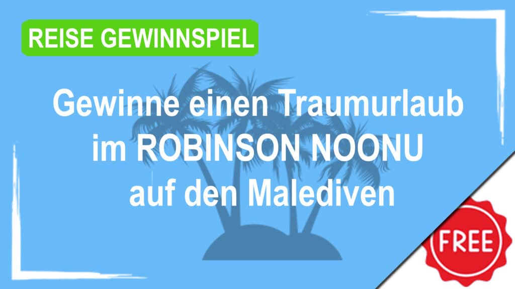 Wie klingt das für euch? Sieben Tage Glücksmomente und wundervolle Gemeinsamzeiten? Sieben Tage kulinarisches Glück? Sieben Tage türkisblaues Wasser und weißen Sandstrand? Klingt gut? Dann fülle das Formular aus und gewinne deinen Traumurlaub für zwei Personen, sieben Nächte in einem Doppelzimmer im ROBINSON NOONU inklusive Verpflegung All-inclusive made by ROBINSON. Ohne Flug und Transfer, Aufenthalt nach Verfügbarkeit in der Sommersaison 2026. Wir wünschen viel Glück!
